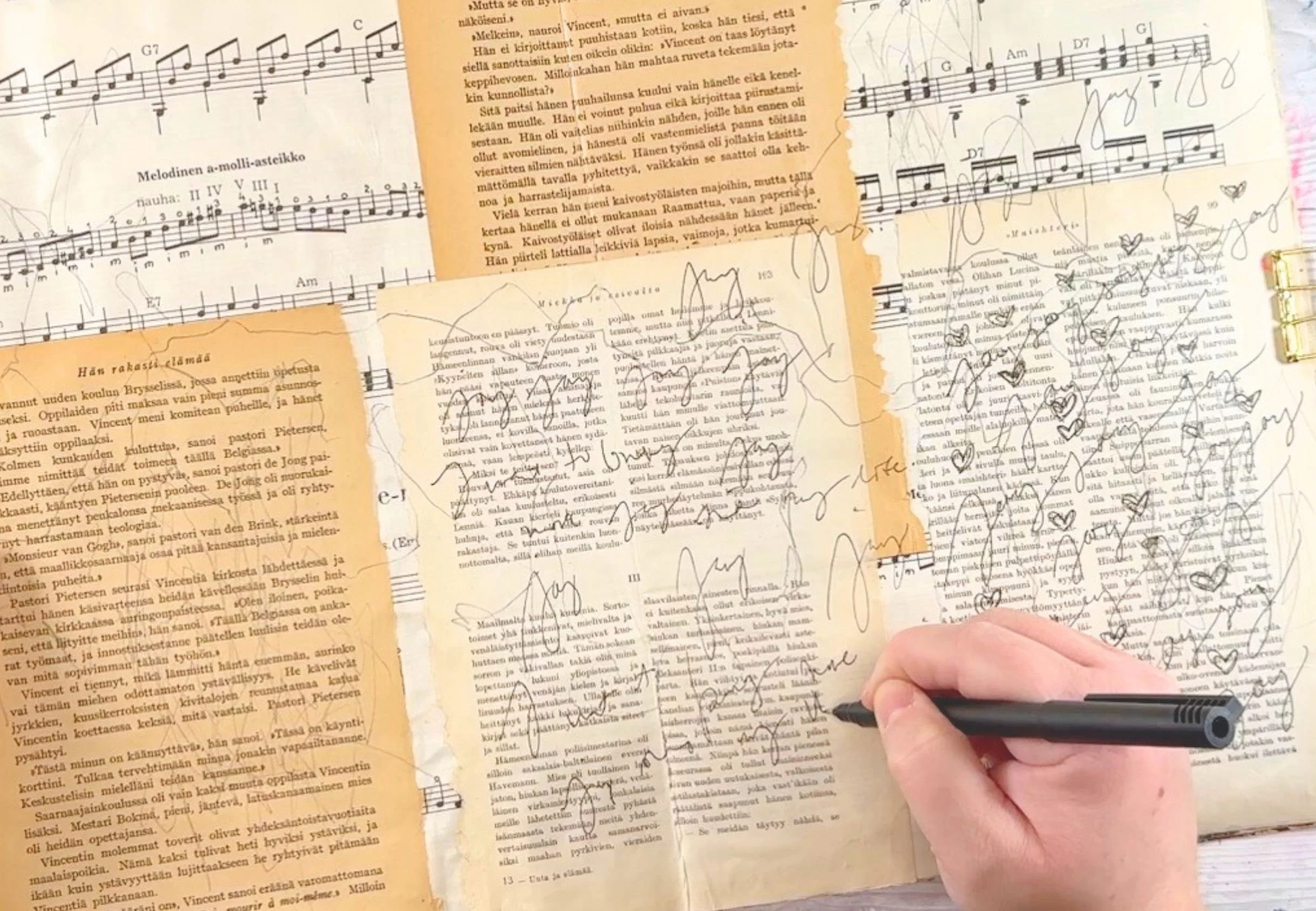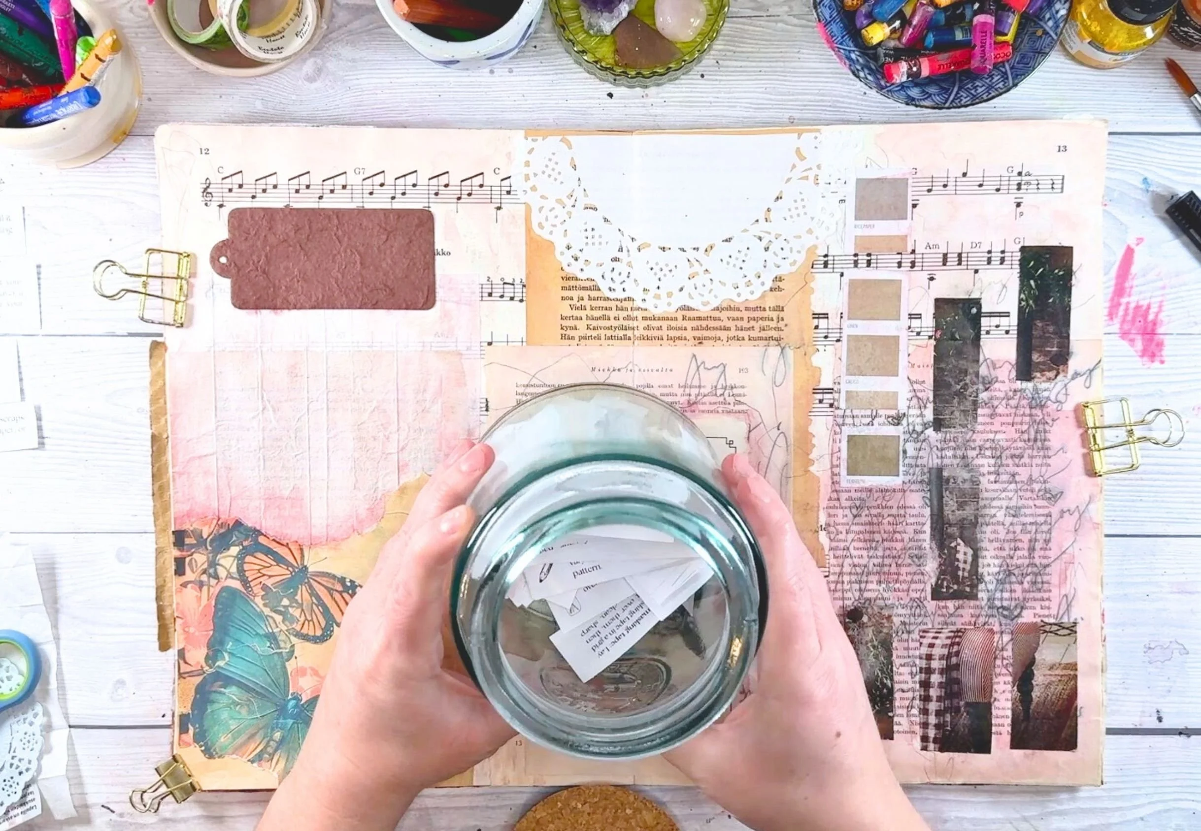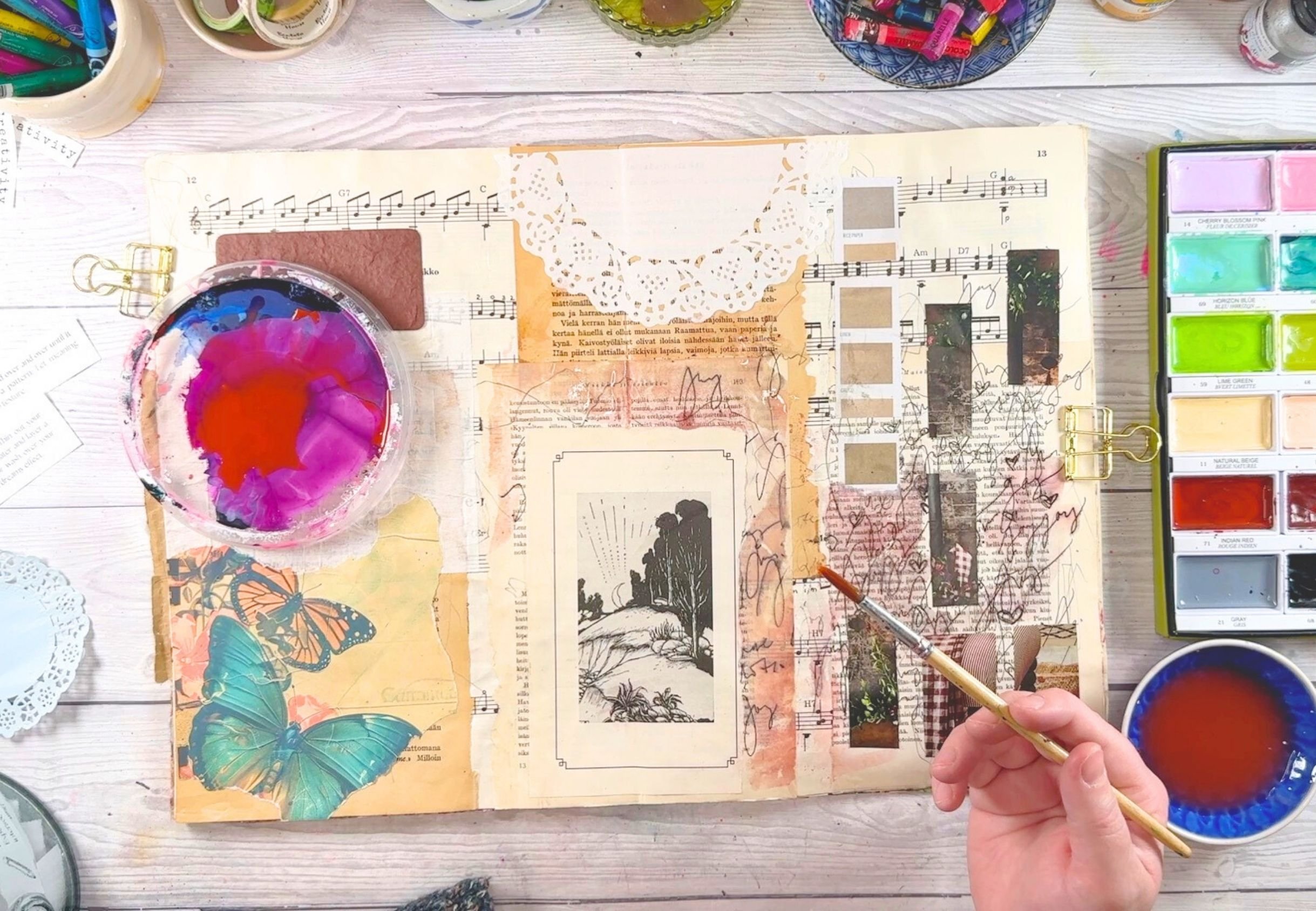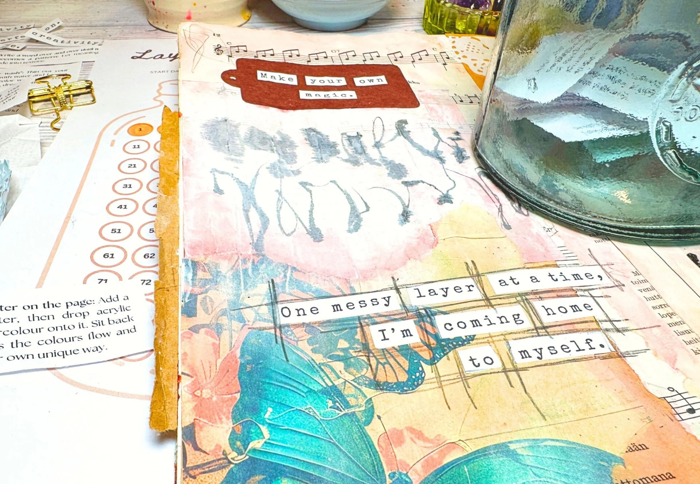Through short, guided tutorials, you’ll see how pages can slowly unfold over time. We focus on layering, responding, and experimenting rather than finishing or perfecting. This approach helps you loosen control, trust your intuition, and enjoy the process as it evolves.